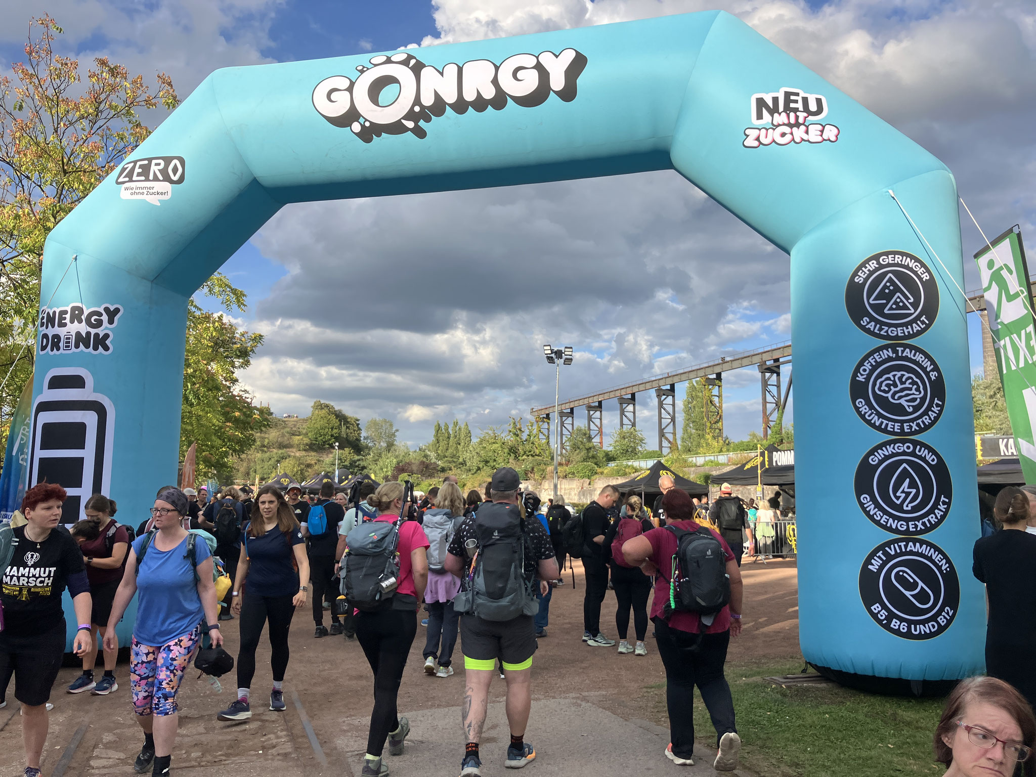 Nach dem erreichen des dritten Verpflegungspunktes wurde uns die Anstrengung mit einem leckeren Hotdog versüsst. Und so gestärkt liefen wir wieder in den bunt beleuchteten Landschaftspark mit den Hochöfen ein.