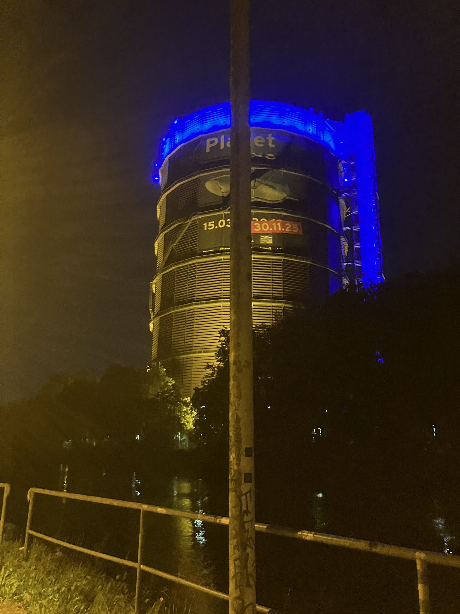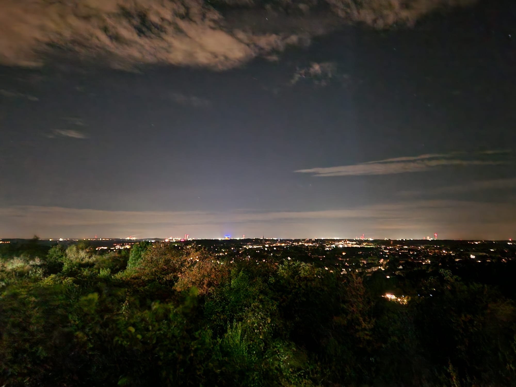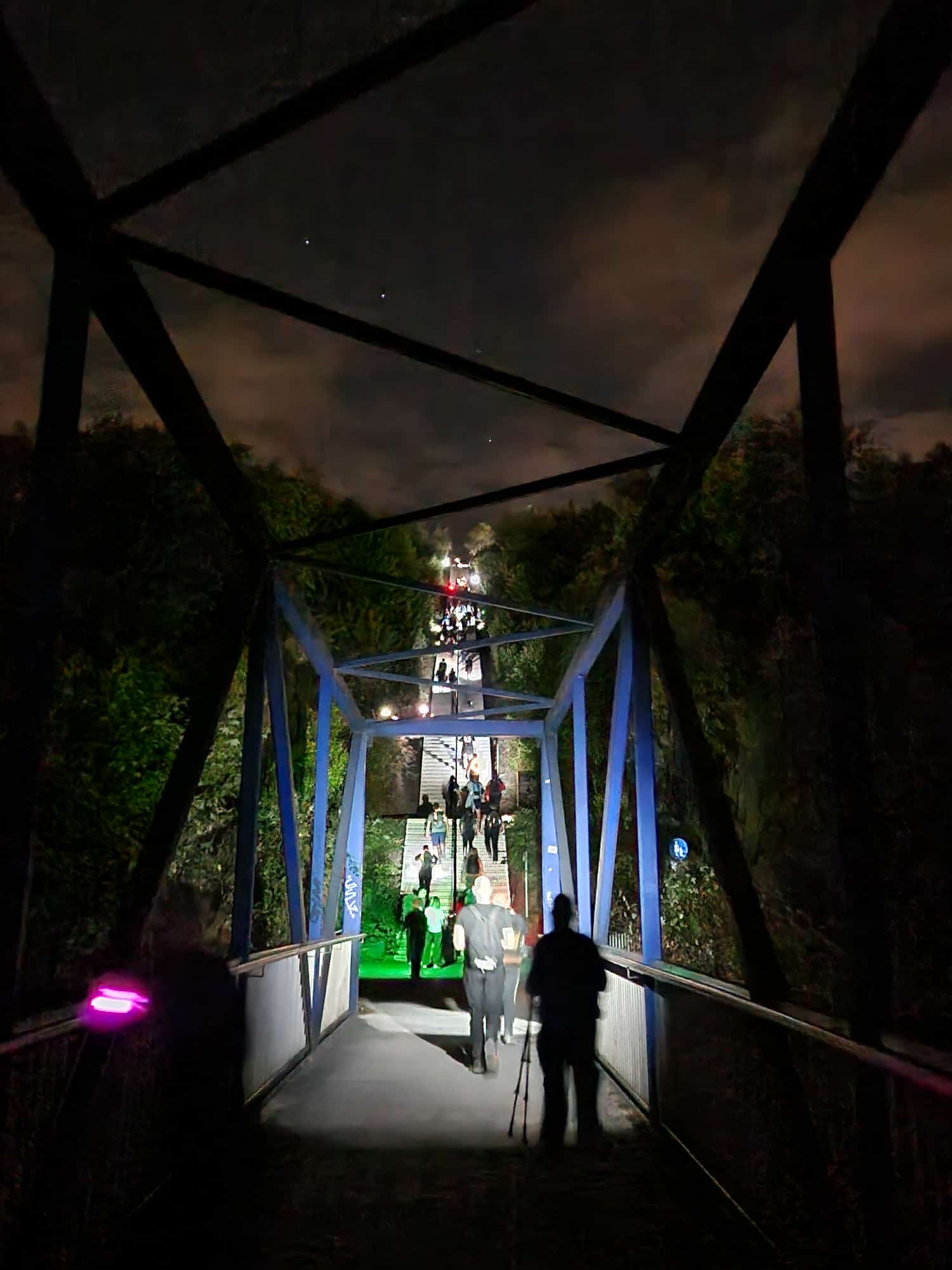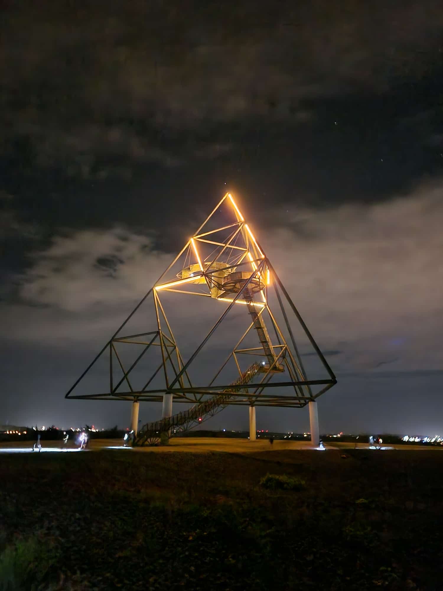 Auch hier konnte das zweite Etappenziel schon von weitem gesehen werden. Doch kurz vorm Tetraeder dann der Hammer. Es ging über die Treppenstufen hinauf zur Ebene unterhalb des Denkmals. Dort oben gab es einen tollen Nachtausblick auf den Ruhrpott. Das Wetter spielte mit. Eine laue Nacht wartete auf die Wanderer und so ging es gut gelaunt wieder zurück Richtung Duisburg.