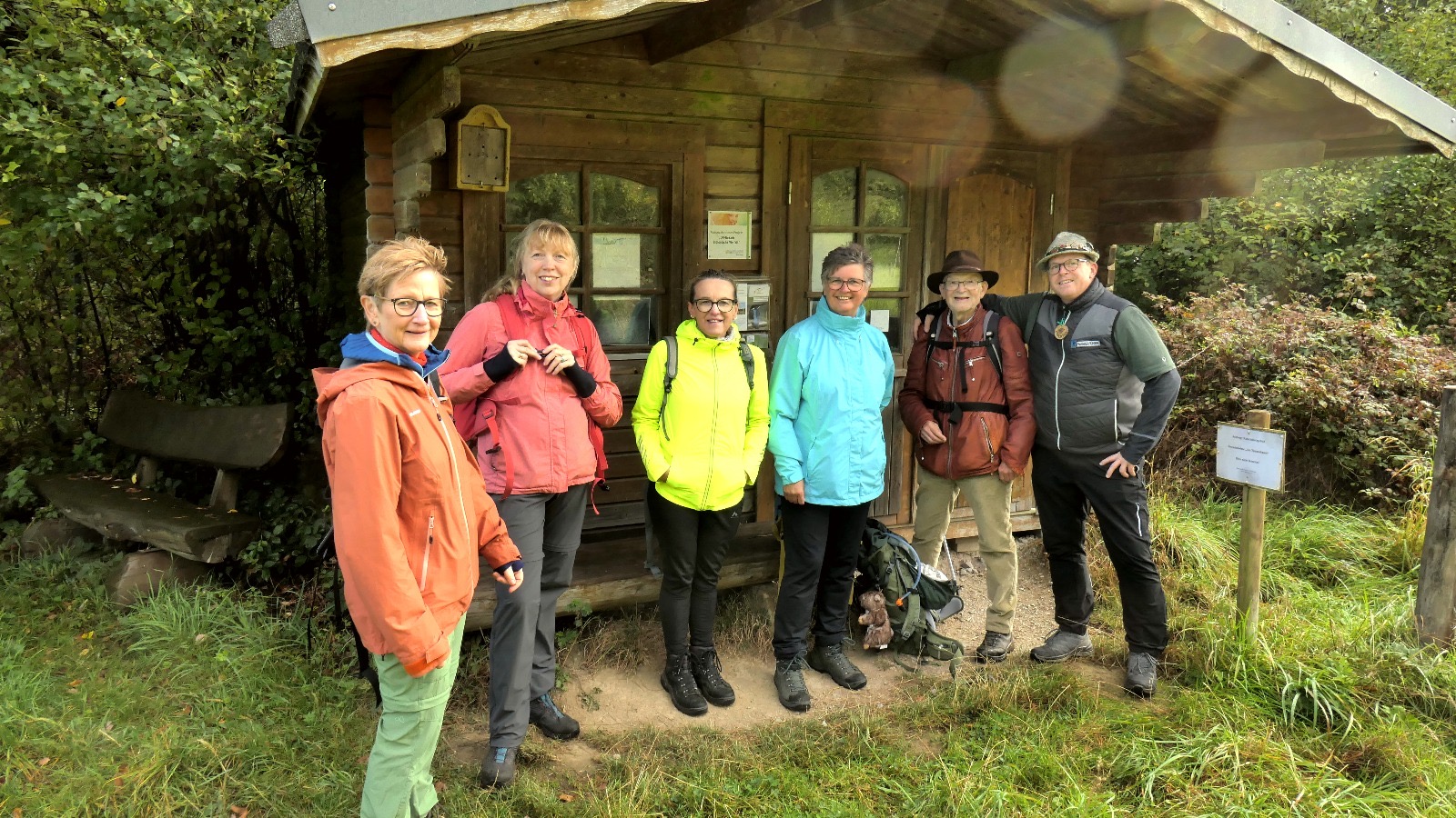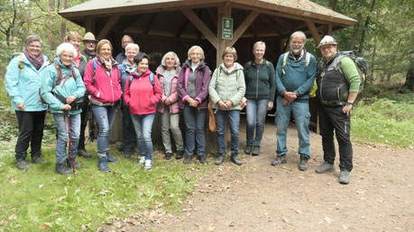 Am Wanderparkplatz des Naturschutzgebietes Testerberge/Bruckhausener Mühlenbach startete die Tour bei entgegen der Prognosen bestem Wanderwetter.