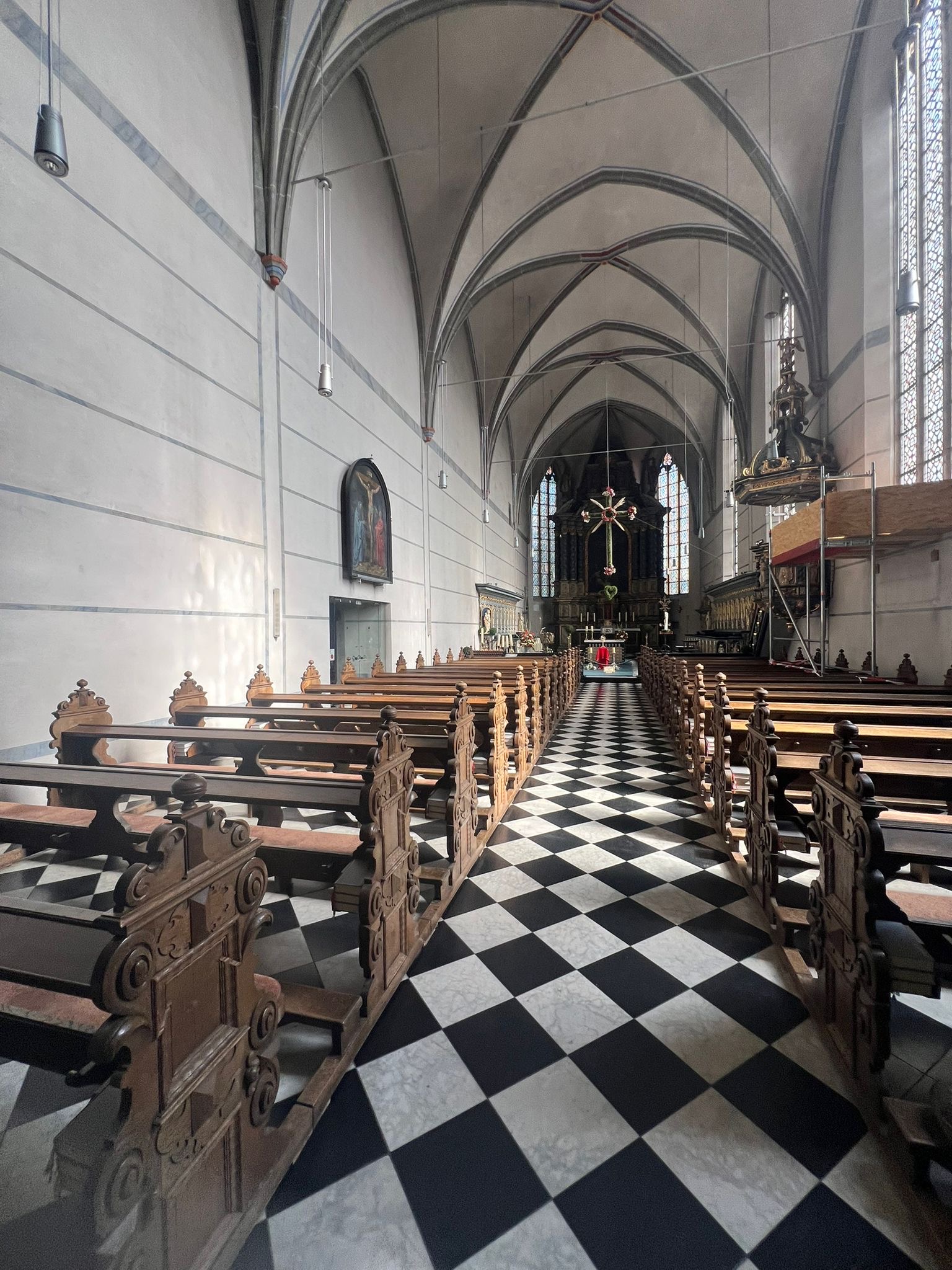Der einsetzende Nieselregen veranlasste Christian Ostgathe dann dazu, vorzeitig den Gipfel wieder zu verlassen und über den gleichen Weg wieder ins Tal ab zu steigen. Unten waren alle wieder heil angekommen und so blieb noch Zeit sich die wunderschöne kleine Barockkirche mit Ihren tollen Malereien an zu schauen. Auf der Terasse des Gasthaus Alpenrose gab es dann einen warmen Kaffee und leckeren Kuchen.