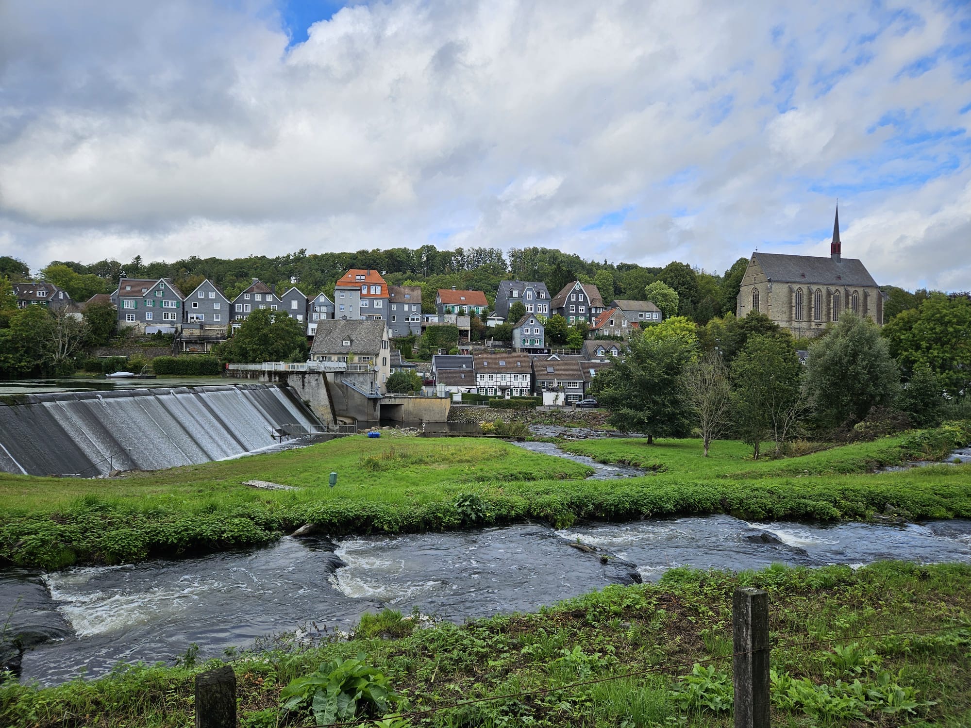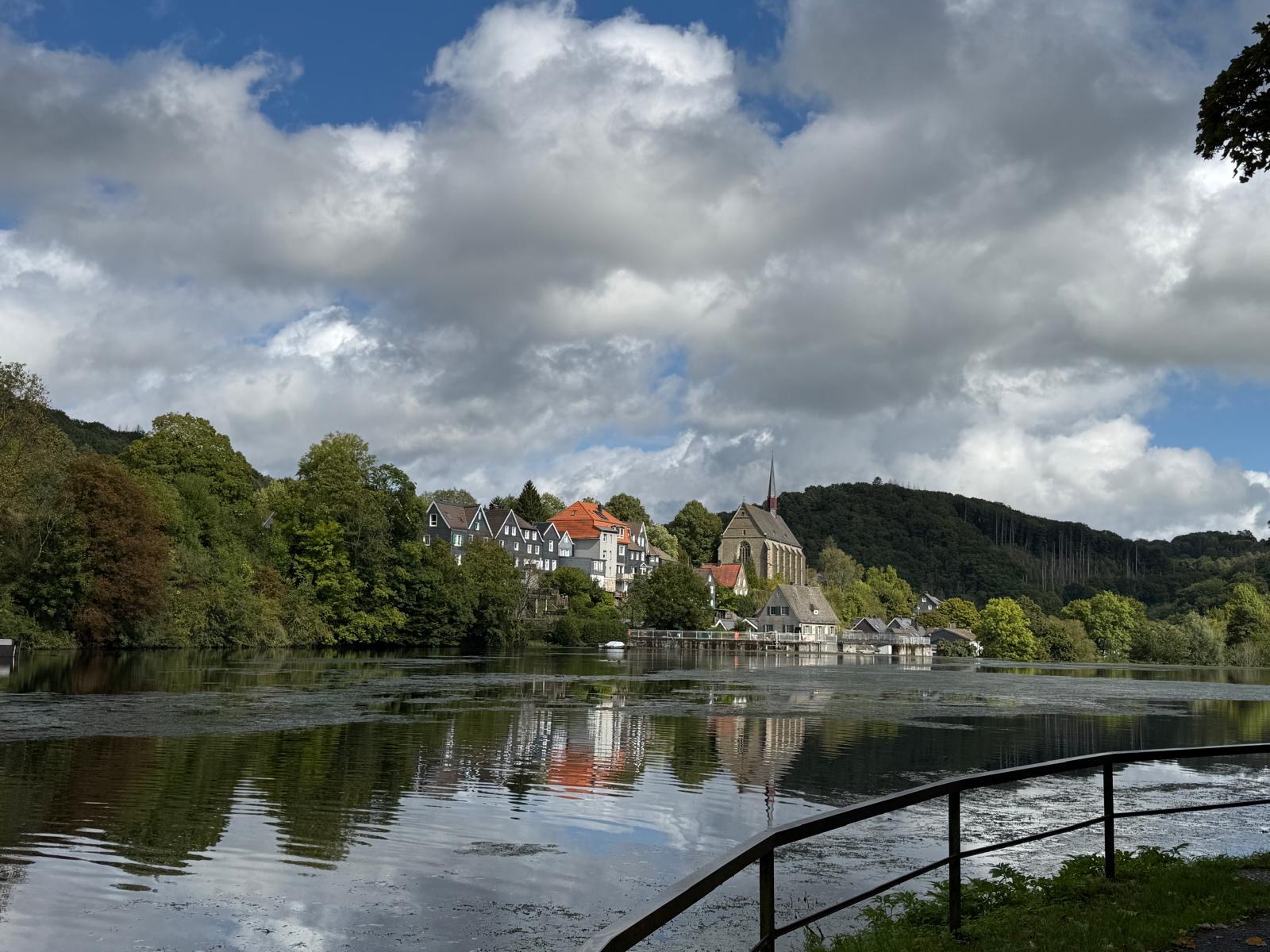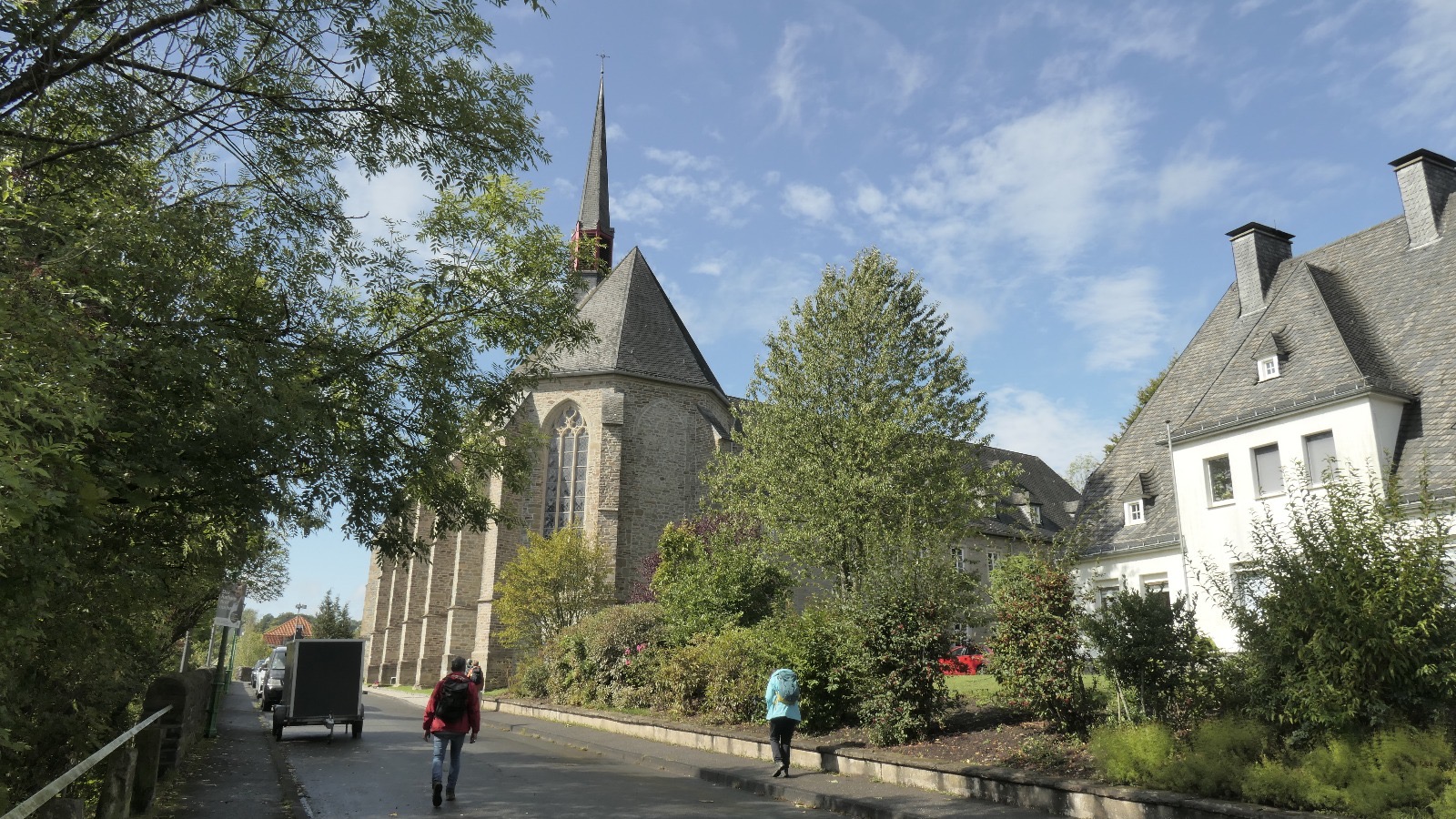 Das Panorama über die Wuppertaler Grenzgemeinde entschädigte für die vielen gewanderten Höhenmeter. Nach dem Abstieg erfolgte der Gang über die Wupper und damit verbunden die "Einreise" ins Rheinland. Im Ort Beyenburg besuchte man die Klosterkirche St. Maria Magdalena und die Kapelle Maria Schnee die u.a. Anlaufpunkt für die Jakobsweg Pilger ist.